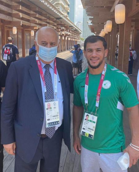 وعلى هامش زيارته للقرية الأولمبية في طوكيو، التقى الرجوب، رئيسة بعثة الجمهورية الجزائرية الشقيقة حسيبة بولمرقة، ولاعب الجودو الجزائري فتحي نورين، الذي انسحب من المشاركة في الأولمبياد بعد أن أوقعته القرعة في مواجهة لاعب إسرائيلي.