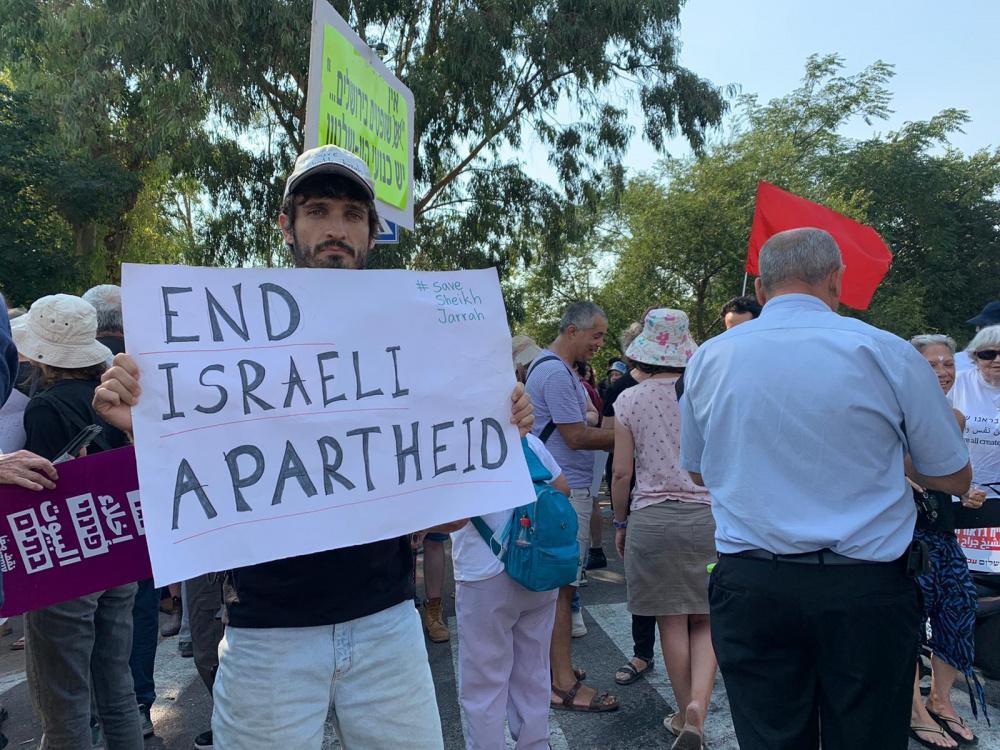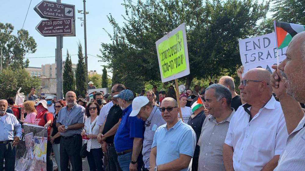 وشارك في المظاهرة نواب عن القائمة المشتركة، ورفع المتظاهرون لافتات كتب على بعض منها "لا للتطهير العراقي" و"لن نرحل"، بالإضافة إلى شعارات أخرى تصديا لمحاولات تهجير حي الشيخ جراح.