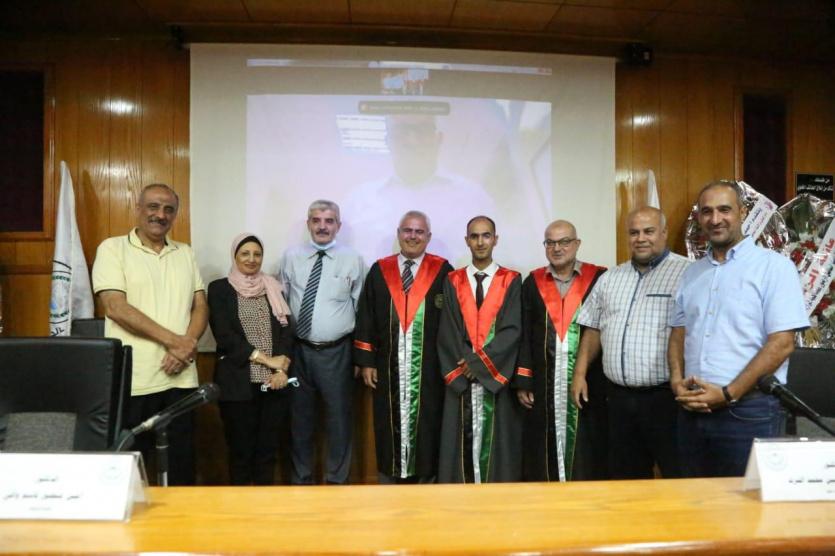 وتألفت لجنة المناقشة من: الدكتور أمين منصور وافي رئيس قسم الصحافة والإعلام في الجامعة الإسلامية-مشرفا ورئيسا، والدكتور "محمد نجيب" الصرايرة عميد كلية الإعلام في جامعة بترا بالأردن-مناقشا خارجيًا، والدكتور "أحمد عرابي" الترك أستاذ الإعلام في الجامعة الإسلامية وعميد شؤون الطلاب الأسبق -مناقشا داخليا.