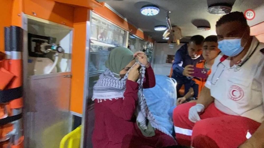 وكان بانتظارها سيارة اسعاف تابعة للهلال الاحمر لنقلها الي المستشفى واجراء الفحوصات لها، حيث من المفترض ان تضع الاسيرة المحررة مولودها قريباً.