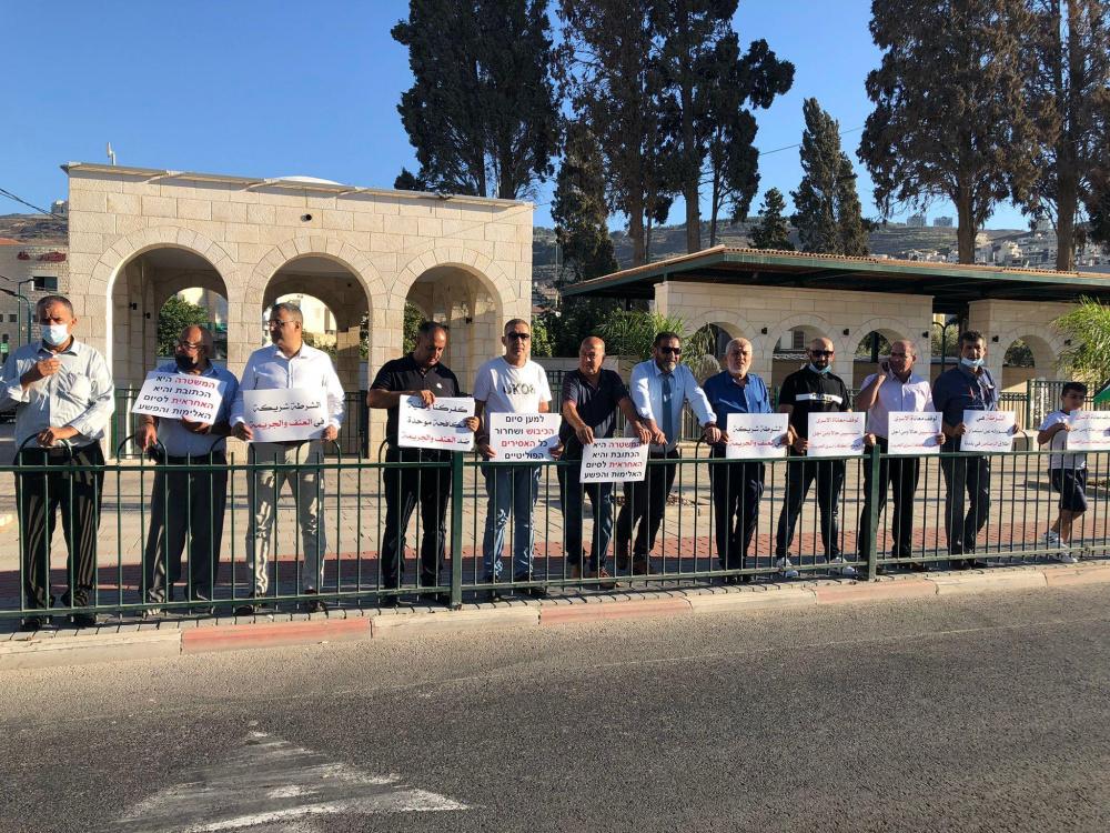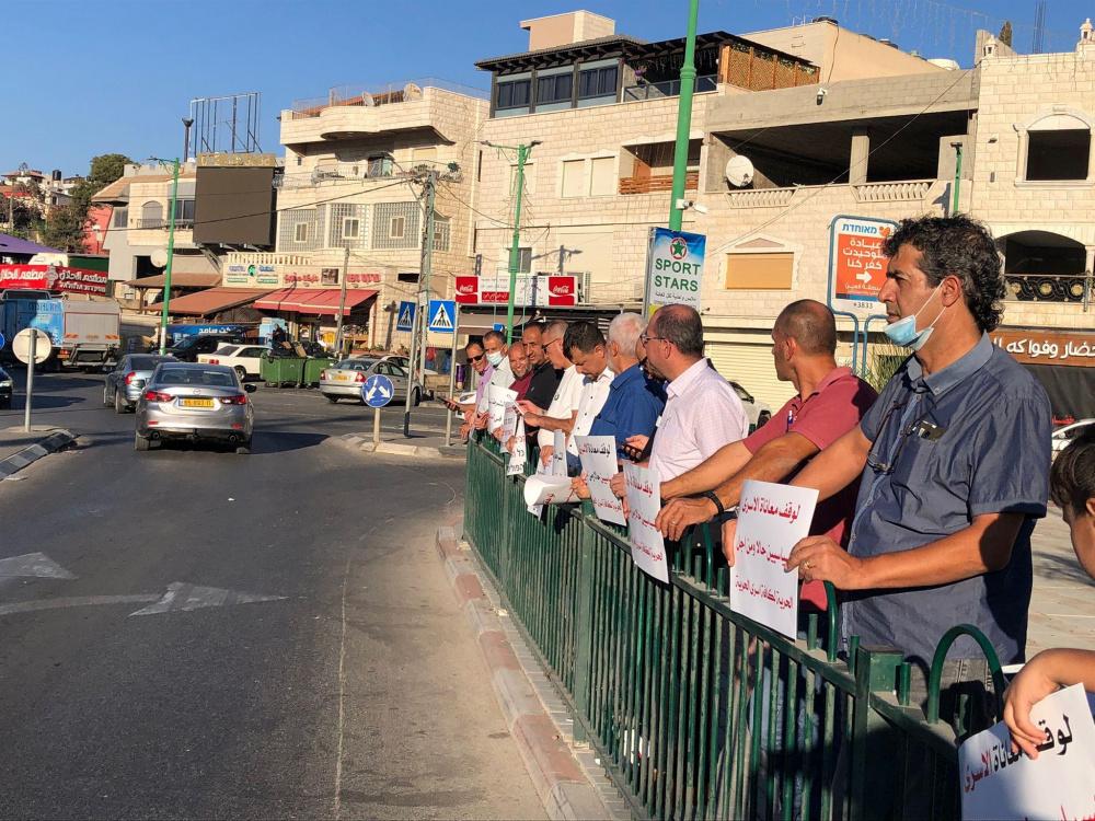 وفي بلدة كفر كنا، تظاهر العشرات من الأهالي إسنادا للأسرى في سجون الاحتلال وضد العنف والجريمة، بمشاركة نشطاء من مختلف الأحزاب والحركات الفاعلة على الساحة المحلية.