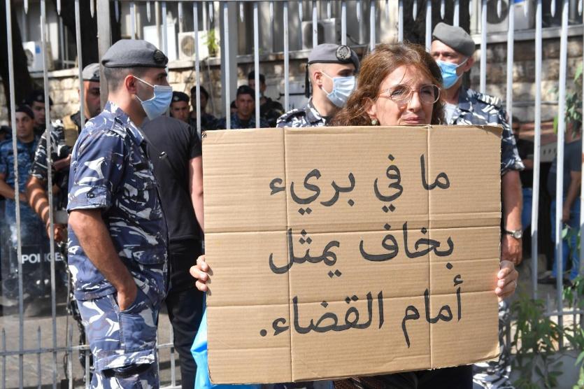 وتجمّع المئات من أهالي ضحايا انفجار المرفأ أمام مبنى "قصر العدل"، الذي يضمّ مقر وزارة العدل، وطالبوا باستمرار التحقيقات لمحاسبة المتسبب في الانفجار الذي وقع في 4 آب/ أغسطس 2020.