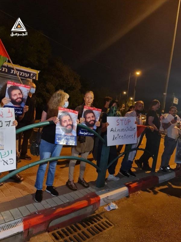نظم عشرات الشبان، مساء اليوم السبت، وقفة دعم وإسناد للأسير مقداد القواسمة المضرب عن الطعام لليوم الـ80 على التوالي، أمام مستشفى "كابلان"، الذي يحتجز فيه بالداخل.
