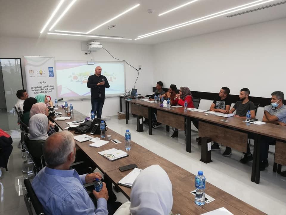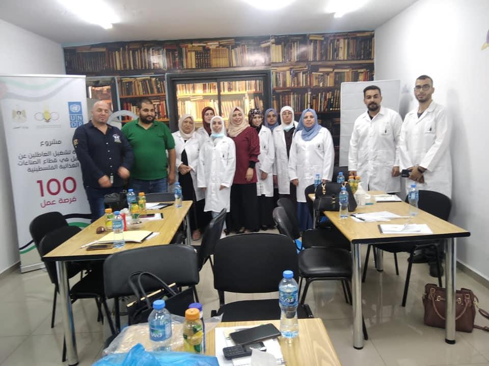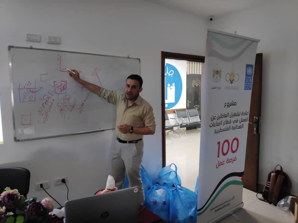 حيث تم تنفيذ التدريب من خلال مجموعة من الخبراء في سلامة الغذاء والتعامل مع الاغذية والعمليات الصناعية والسلامة المهنية حيث هدف التدريب الى تطوير قدرات العاملين في قطاع الصناعات الغذائية الفلسطينية من خلال البرنامج وذلك لتعزيز السلامة الغذائية والمهنية وتطوير المنتجات الفلسطينية حيث شارك في التدريب 100 شخص يعمل مباشرة في قطاع الصناعات الغذائية داخل 45 وحدة إنتاجية متخصصة في الصناعات الغذائية، بالإضافة لتوزيع أدوات سلامة شخصية ومهنية لكل مشارك لضمان الانتاج السليم وصحة وسلامة العاملين(لابكوت شخصي، معقم، كمامات، كفوف) ، حيث أن التدريبات شملت جميع القطاعات والمحافظات.