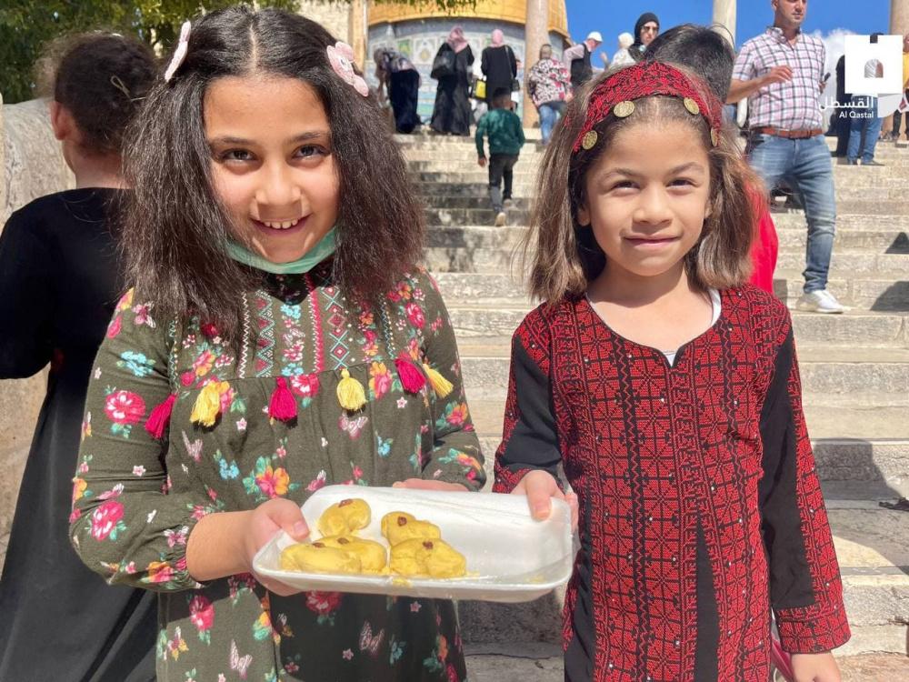 وشمل الاحتفال، أداء صلاة الظهر في الأقصى، وتوزيع الحلوى، وقراءة القرآن والأناشيد الدينية، وسط أجواء من الفرحة.