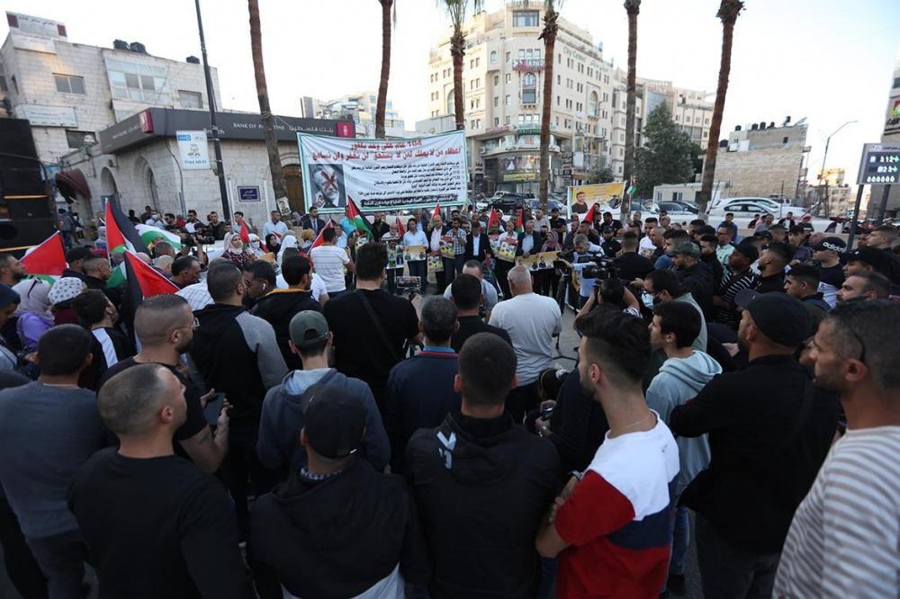 ونظمت الوقفة في ميدان المنارة، بدعوة من مؤسسات الأسرى والقوى الوطنية والإسلامية وتجمع النقابات المهنية.