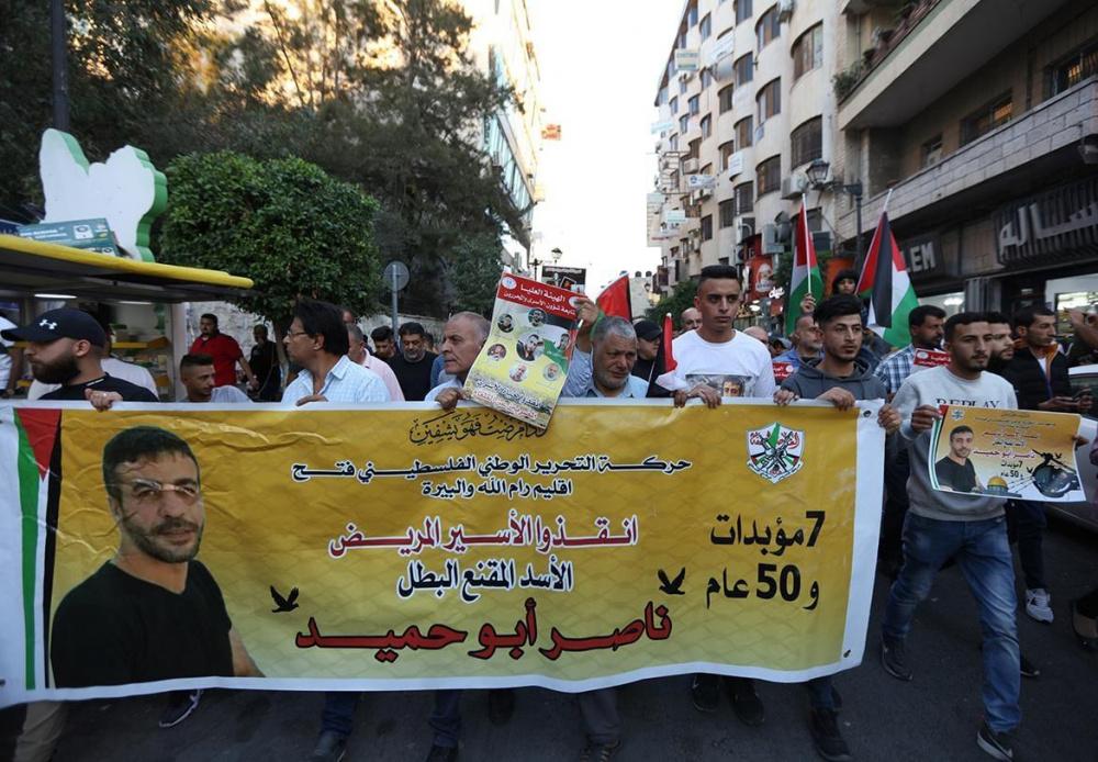 وجاب المشاركون شوارع مركز المدينة، رافعين صور الأسرى المضربين عن الطعام والمرضى، ورددوا شعارات تطالب بحريتهم وتدعو لوقف سياستي الاعتقال الإداري، والإهمال الطبي المتعمد اللتين تنتهجهما سلطات الاحتلال.