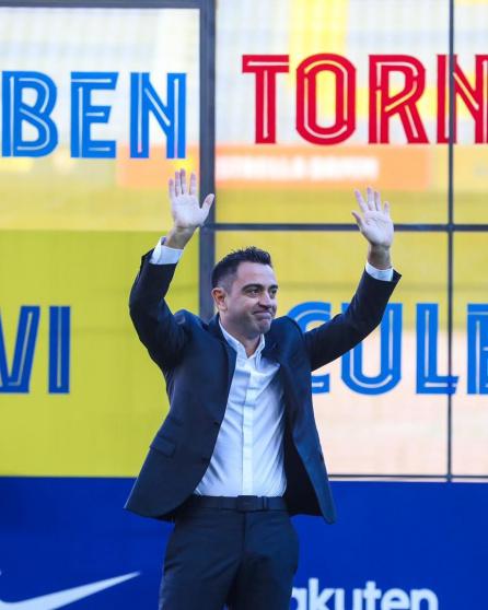 قدم برشلونة مدربه الجديد، تشافي هرنانديز، أمام الآلاف من عشاق النادي في ملعب كامب نو، اليوم الاثنين.
