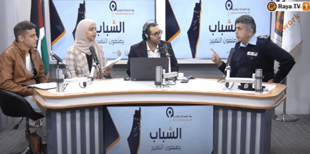 واستعرض الشابان هديل كامل وأسامة البزور في مستهل الحديث، ورقة أعداها حول الجرائم الإلكترونية في فلسطين، قبل أن يوجهان أسئلة ويتبادلان النقاش مع العقيد هندية.