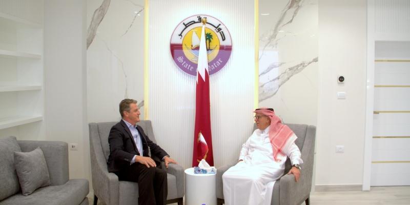 واستقبل السفير العمادي اليوم، توماس وايت، مدير شؤون وكالة غوث وتشغيل اللاجئين الفلسطينيين "أونروا" في قطاع غزة، في مقر اللجنة القطرية بغزة.