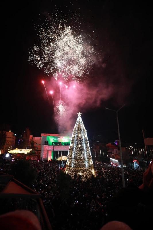 بالفيديو والصور: إضاءة شجرة الميلاد في رام الله