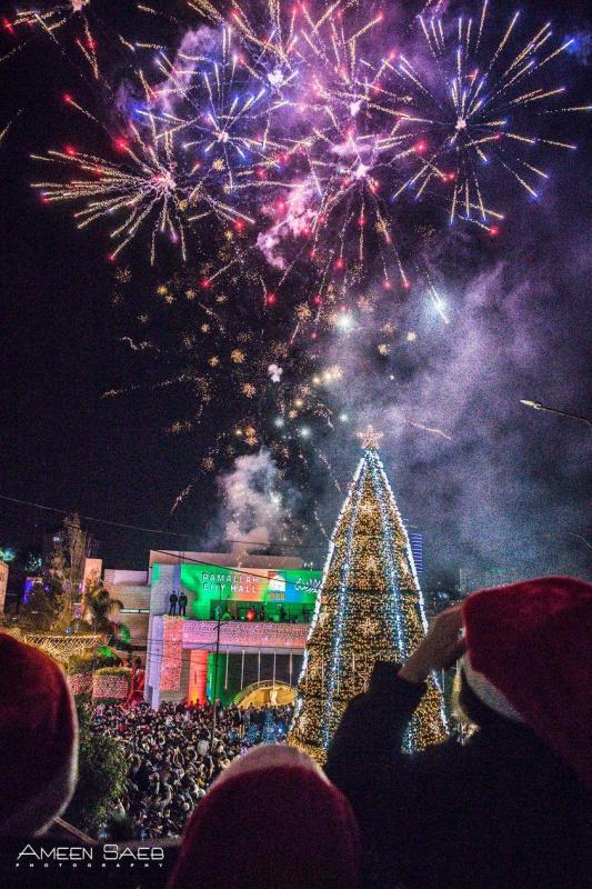 لحظة اضاءة شجرة الميلاد في مدينة رام الله#شاهد لحظة اضاءة شجرة الميلاد في مدينة رام الله