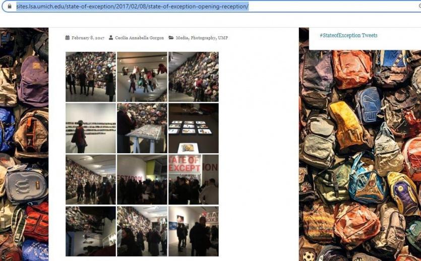 وتعود إحدى الصور إلى عام 2017، حيث نشرها معهد العلوم الإنسانية في جامعة ميشيغان في موقعه، ترويجا لافتتاح معرض "State of Exception" في مدرسة بارسونز في نيويورك.