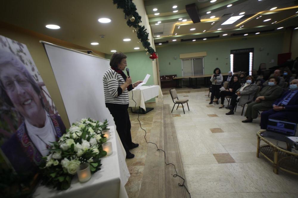بدورها، استذكرت عضوة جمعية الشابات الفلسطينية عبلة ناصر، أبرز المحطات في حياة الراحلة، والعديد من المواقف التي جمعتها معها، مؤكدةً على دورها الكبير في خدمة المجتمع الفلسطيني، خاصة الفئات المهمشة، إلى جانب مساهماتها الجليلة في جمعية الشابات المسيحية منذ تأسيسها، بما تملكه من علم وثقافة ومعرفة.