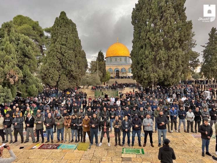 أدى آلاف المصلين صلاة الجمعة، في باحات المسجد الأقصى، رغم عراقيل الاحتلال وتشديداته.