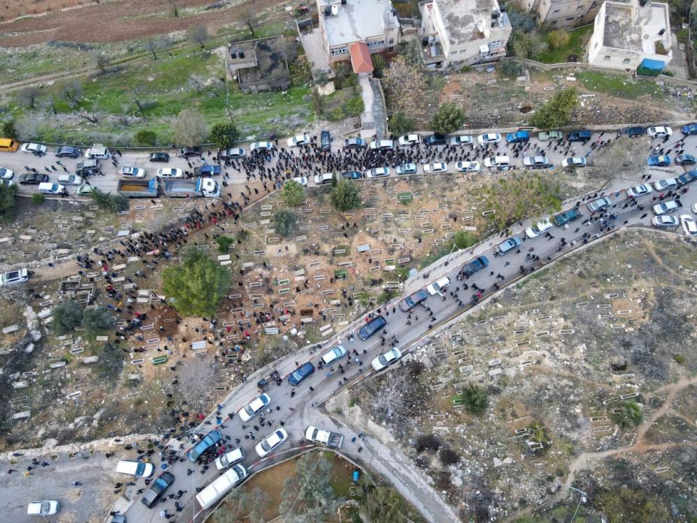 وانطلق موكب التشييع من مجمع فلسطين الطبي بمدينة رام الله باتجاه منزلها في البلدة، ومن ثم حمل المشيعون الجثمان الذي لف بالعلم الفلسطيني وجابوا به شوارع البلدة، مرددين الهتافات الغاضبة والمنددة بجرائم الاحتلال والمستوطنين بحق شعبنا، ومن ثم أدوا صلاة الجنازة على الجثمان قبل مواراته الثرى في مقبرة البلدة.