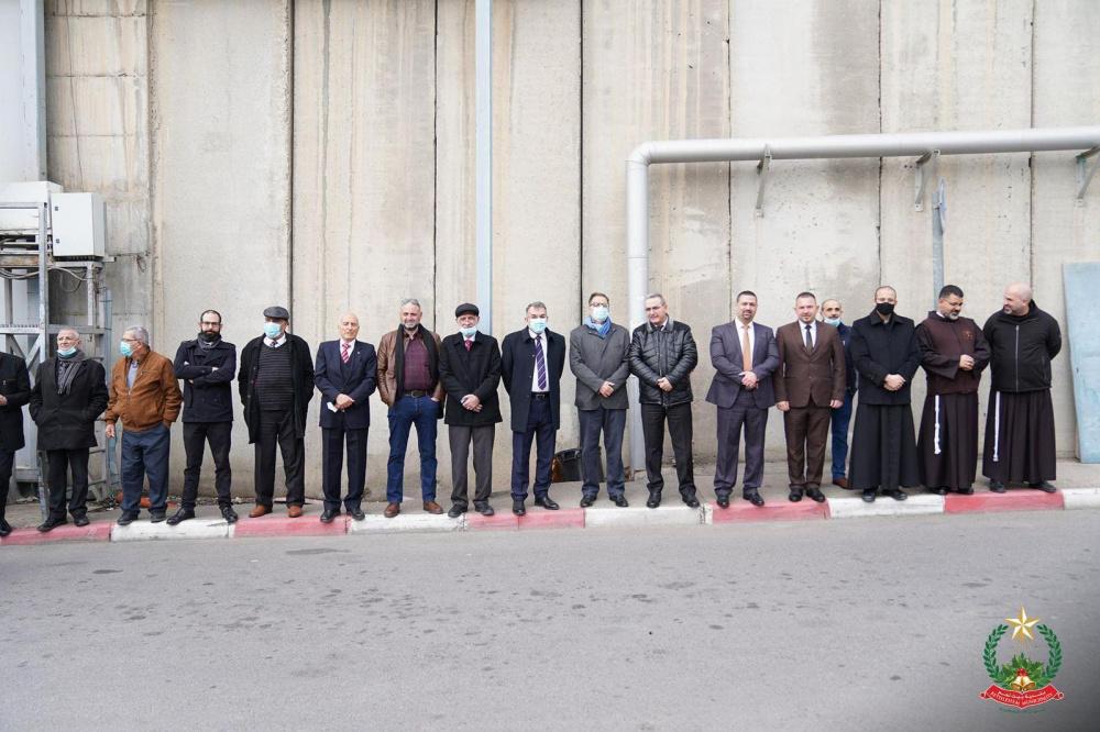 و كان في استقباله نائب رئيس بلدية بيت لحم أ. حنا حنانيا و محافظ بيت لحم اللواء كامل حميد و قائد المنطقة سيادة العميد ناضر عمر و مدير شرطة محافظة بيت لحم سيادة العميد طارق الحج وقادة الأجهزة الأمنية و معالي د. رمزي خوري رئيس اللجنة الرئاسية العليا لشؤون الكنائس في فلسطين ومدير عام البلدية أنطون مرقص وعدد من الشخصيات الدينية والوطنية والمجتمعية.