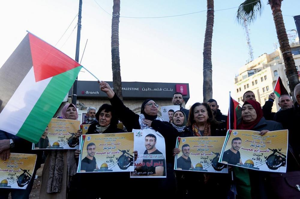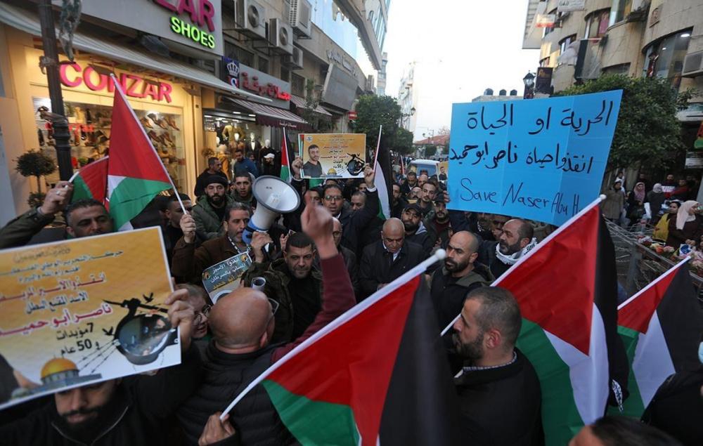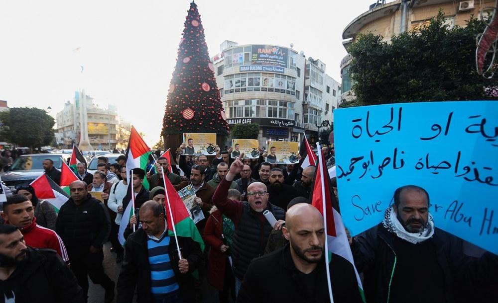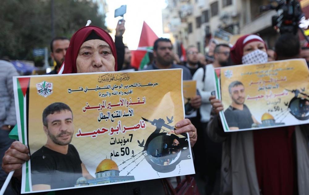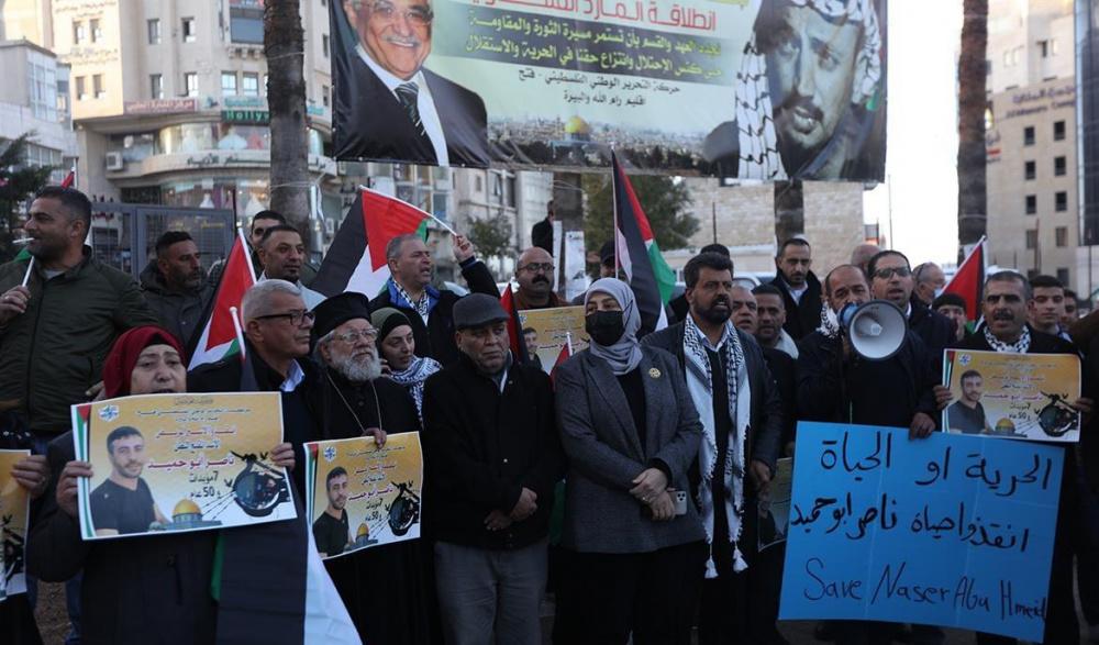 وقفة ومسيرة دعم للأسير المريض ناصر أبو حميد في رام الله