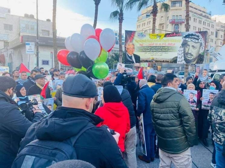 صور: وقفة دعم وإسناد للأسير ناصر أبو حميد وسط رام الله
