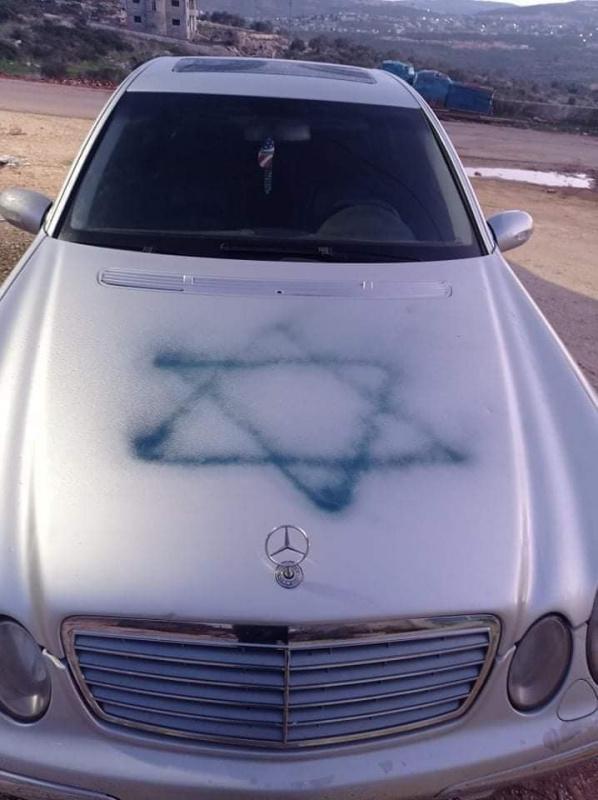 مستوطنون يعطبون إطارات مركبات ويخطون شعارات عنصرية