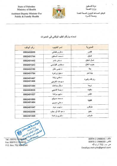 مرفق أرقام الطب الوقائي في المحافظات، في حال الضرورة: