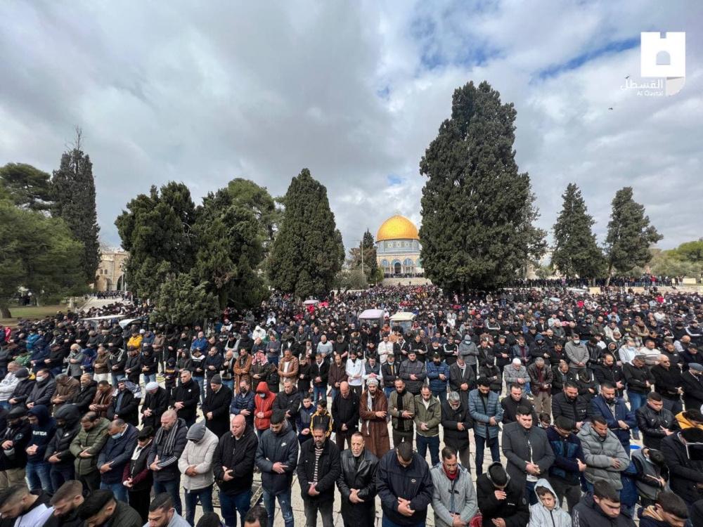 أدى عشرات الآلاف صلاة الجمعة في المسجد الأقصى المبارك، رغم الإجراءات المشددة التي فرضتها سلطات الاحتلال الإسرائيلي على أبوابه ومداخله والبلدة القديمة في القدس المحتلة.