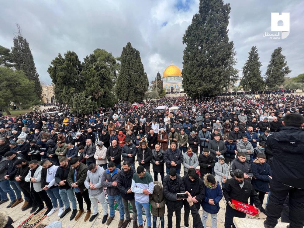 وكان آلاف المصلين أدوا صلاة فجر اليوم الجمعة، في المسجد الأقصى المبارك، رغم قيود الاحتلال وتشديداته.