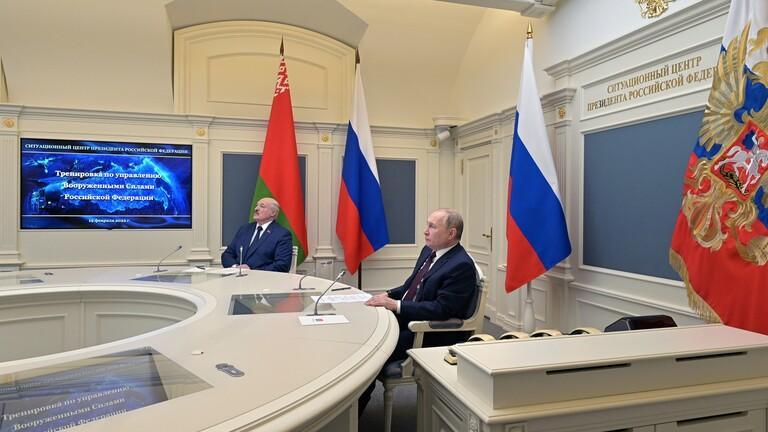 ونشرت الوكالة صورا تظهر بوتين برفقة نظيره البيلاروسي ألكسندر لوكاشينكو، وهما يشرفان على التدريبات التي تحمل اسم "التدريب الخاص بقيادة القوات المسلحة الروسية" من غرفة العمليات الرئاسية في الكرملين.
