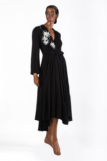 يعود هذا الثوب إلى مجموعة Giorgio Armani الخاصة برحلات 2022. تمّ تنفيذه بخامة الكريب الحريري، أما سعره فيبلغ 4700 دولار أميركي. وهو يتميّز بلونه الأسود، ويزيّنه حزام عند الخصر وأزهار اللوتوس البيضاء المطرّزة على ناحية من الصدر.