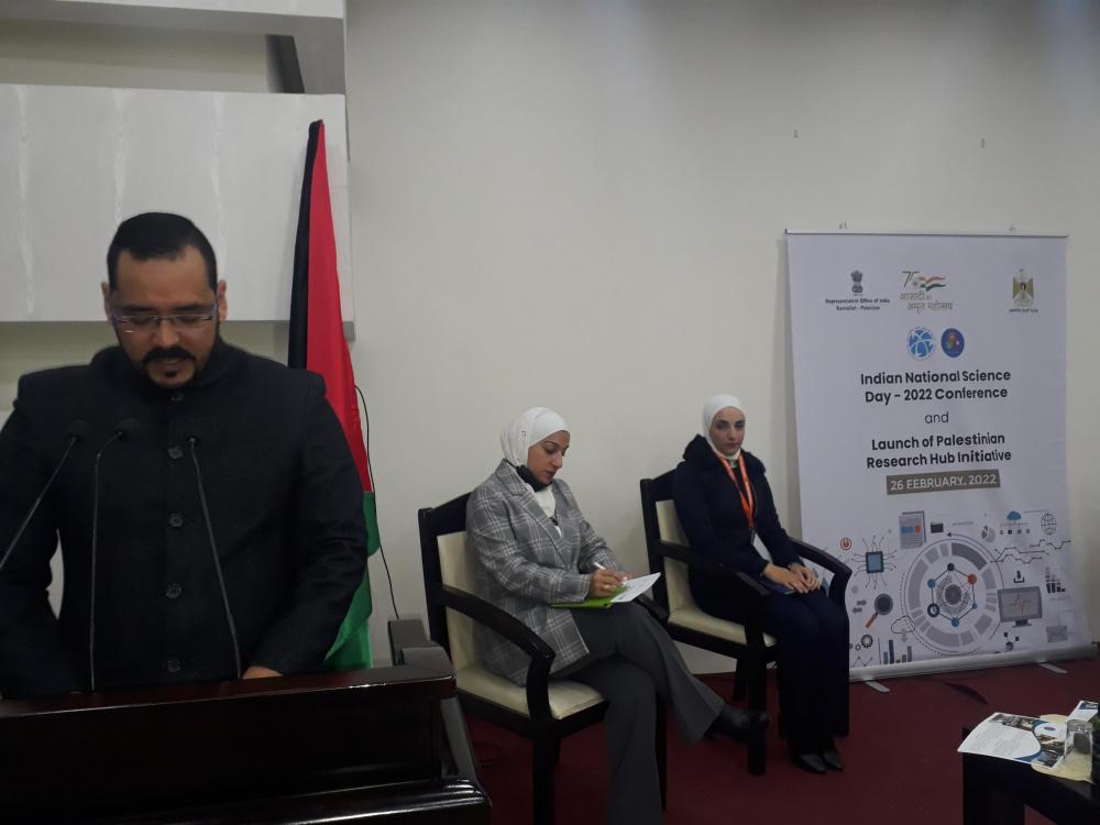 ضمن الفعاليات الاحتفالية "آزادي كا أمريت ماهوتساف"، وبمناسبة اليوم الوطني الهندي للعلوم والذي يقام سنوياً تقديراً للعالم الهندي السيد شاندراسيكهارا فينكاتا رامان، وهو أول عالم هندي يفوز بجائزة نوبل، والتي حاز عليها لاكتشافه الظاهرة العالمية المعروفة ب"تأثير رامان". نظمت الممثلية الهندية في رام الله، يوم السبت الموافق 26 شباط، مؤتمر "اليوم الوطني الهندي للعلوم 2022"، وذلك بالتعاون مع وزارة التربية والتعليم الفلسطينية، والأكاديمية الوطنية الهندية للعلوم، وأكاديمية فلسطين للعلوم والتكنولوجيا ومجتمع البحث العلمي في فلسطين والذي احتضنته اكاديمية فلسطين تحت مظلتها.