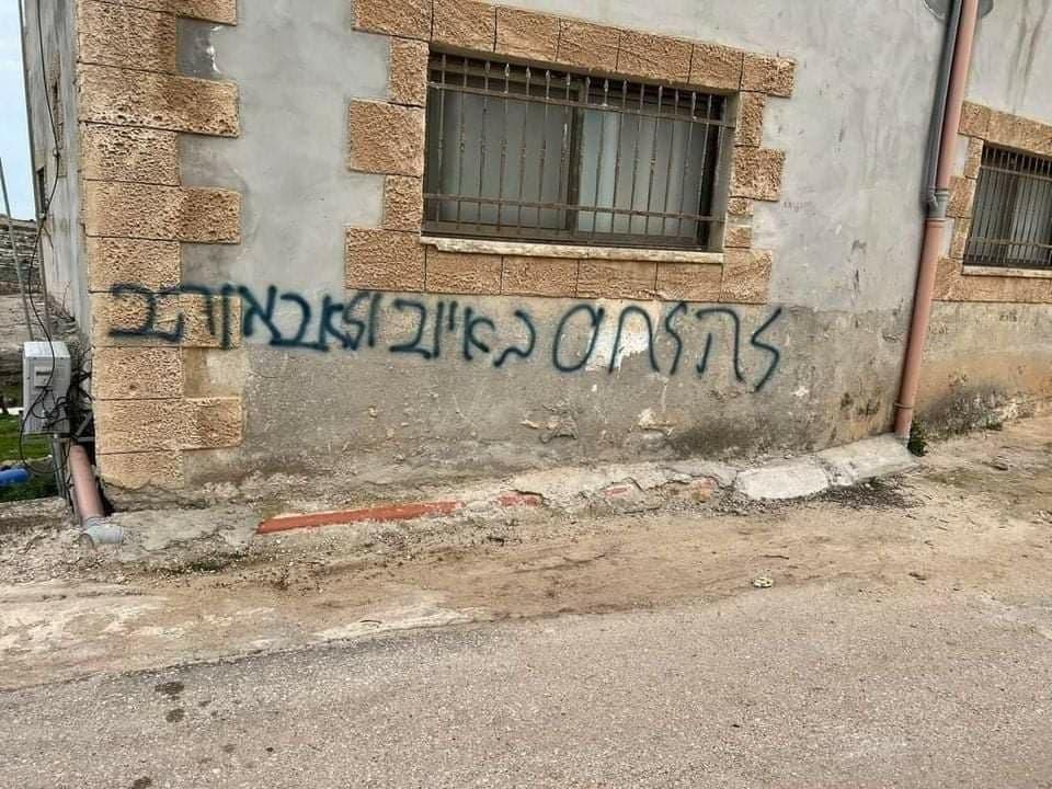 مستوطنون يعطبون إطارات 11 مركبة ويخطون شعارات عنصرية شرق سلفيت