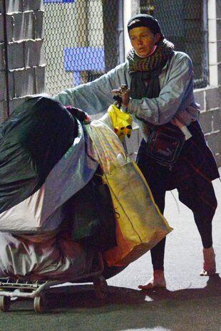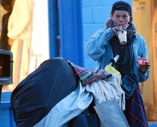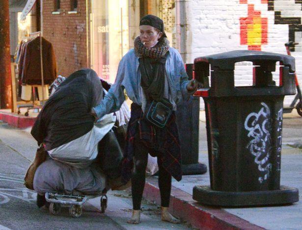 وتدثرت النجمة السابقة بقطع كثيرة من الثياب، في مسعى لتفادي البرد القارس، بينما تقضي الشتاء في الشارع.