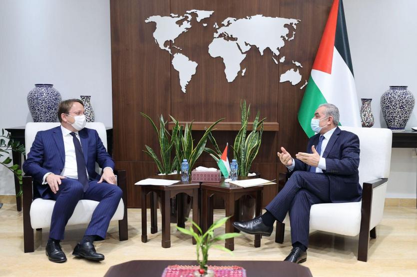 وأطلع رئيس الوزراء المفوض الأوروبي على آخر المستجدات السياسية وإجراءات إسرائيل التي تقضي على أي فرصة لإقامة الدولة الفلسطينية، من خلال التوسع الاستيطاني والاستيلاء على الأراضي وغيرها، مؤكدا ضرورة العمل من أجل خلق مسار سياسي جاد لإنقاذ حل الدولتين وإنهاء الاحتلال وإقامة الدولة الفلسطينية المستقلة.