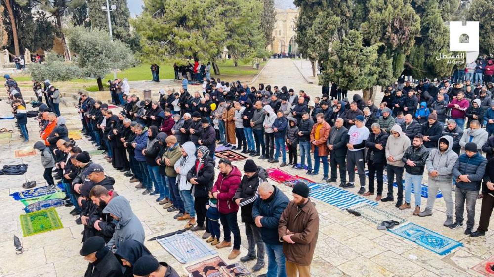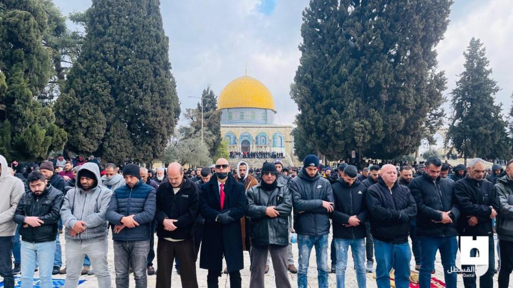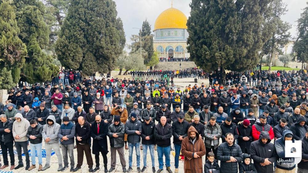 وكان آلاف المصلين أدوا صلاة الفجر في المسجد الأقصى، رغم قيود الاحتلال وتشديداته.