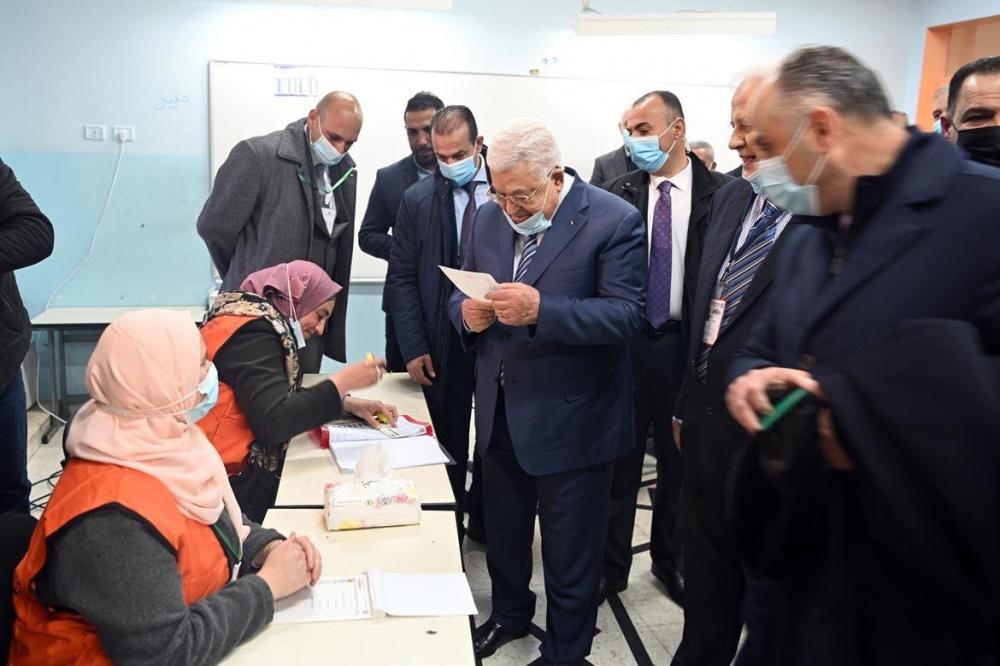 شاهد: الرئيس عباس يدلي بصوته في الانتخابات المحلية