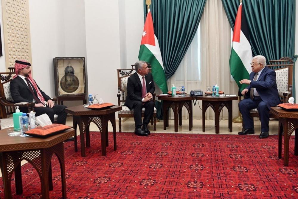 استقبل رئيس دولة فلسطين محمود عباس، اليوم الإثنين، في مقر الرئاسة في مدينة رام الله، العاهل الأردني الملك عبد الله الثاني، يرافقه سمو ولي العهد الأمير الحسين بن عبد الله الثاني.