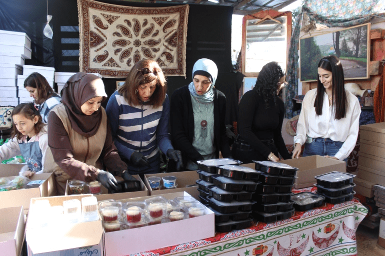 المحال التجارية الكبيرة مبيعاتها قوية، لكن هناك الكثير من النساء اللاتي يعملن من منازلهن في صناعة الحلويات مثلا، اعتمدتُ 7 من هؤلاء وتعاقدت معهن لشراء الحلويات منهن على مدار الشهر"، يضيف عيسى القواسمي.