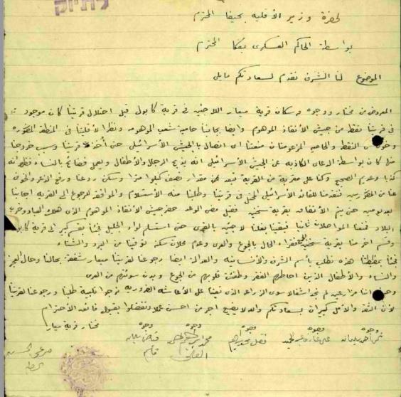 بعد انتهاء تسجيل جميع سكان القرية يقوم المختار والإمام وأعضاء مجلس الاختيارية بالتوقيع على النص التالي: "بتاريخه حضرت لقريتنا قرية ميعار التابعة لناحية شفاعمرو هيئة تحرير النفوس وقد أجري تحرير نفوس القرية المذكورة كما موضح في هذا الدفتر بحضورنا فقد بلغ عدد النفوس الذكور مائة وتسعة وثمانون، ومائة وخمسة وثمانون إناث جميعًا ثلاثمائة وأربعة وسبعون نفر بدون أن يبقى نفر الفرد خارج القيد وإذا لا سمح الله تعالى ظهر خلاف ما قررنا نكون تحت أشد المسئولية ولأجله حررنا هذه المضبطة على ذيل الدفتر تحريرًا في 18 كانون الثاني 1324 رومية/31 كانون الثاني 1908 ميلادية. ثم تظهر التواقيع يليها ملاحظة مأمور النفوس وتوقيعه مع موظفيه..".