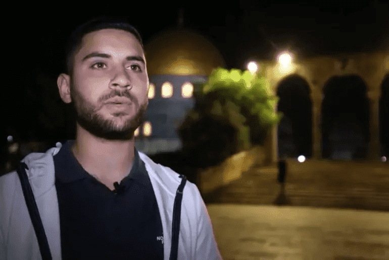 الشاب محمد العلمي خلال أدائه "توشيحات رمضان" بالمسجد الأقصى