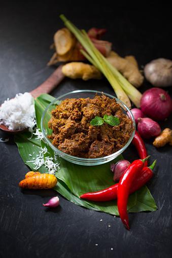 ابتكرت الطبق مجموعة مينانغكابو العرقية في إندونيسيا التي رأت الطبق تجسيداً لثقافتها، إذ يرمز اللحم إلى القادة أو الملوك أو كبار السن، وحليب جوز الهند للمعلمين والكتاب، والفلفل الحار للزعماء الدينيين، وخليط التوابل لباقي المجتمع.