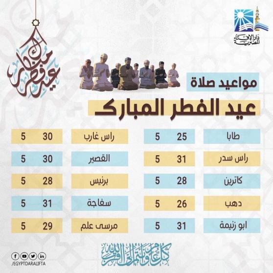 موعد صلاة عيد الفطر 2022 في طابا 5:25 صباحا.