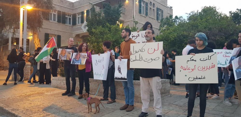 وهتف المحتجون، بشعارات مختلفة مثل: "ما منهاب ما منهاب اسرائيل دولة ارهاب"، و"الارهابي مين مين؟ اللي قتلوا شيرين"، و"القدس عاصمة فلسطين" وهتافات اخرى.