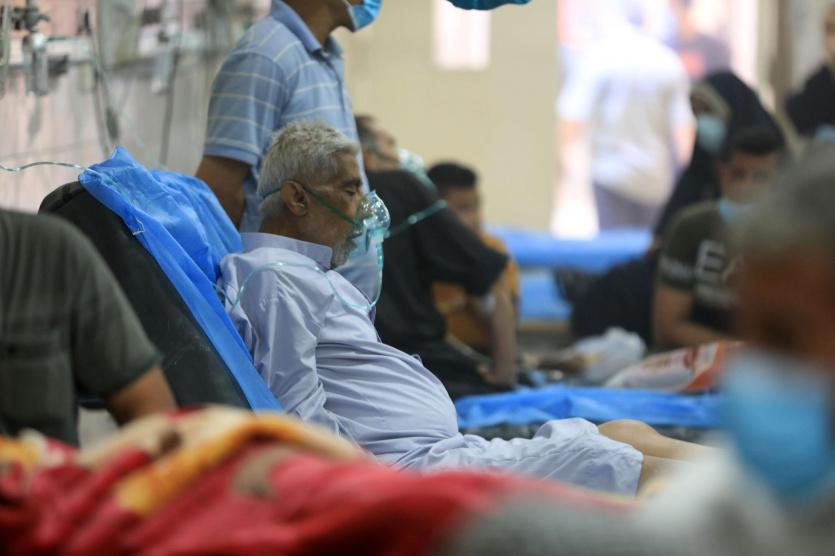 مسنون يتلقون تنفسا اصطناعيا في مستشفى في بغداد، اليوم