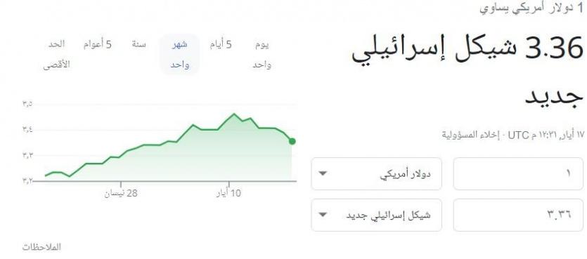 وبلغ سعر صرف الدولار مقابل الشيكل الان 3.36 شيكل.