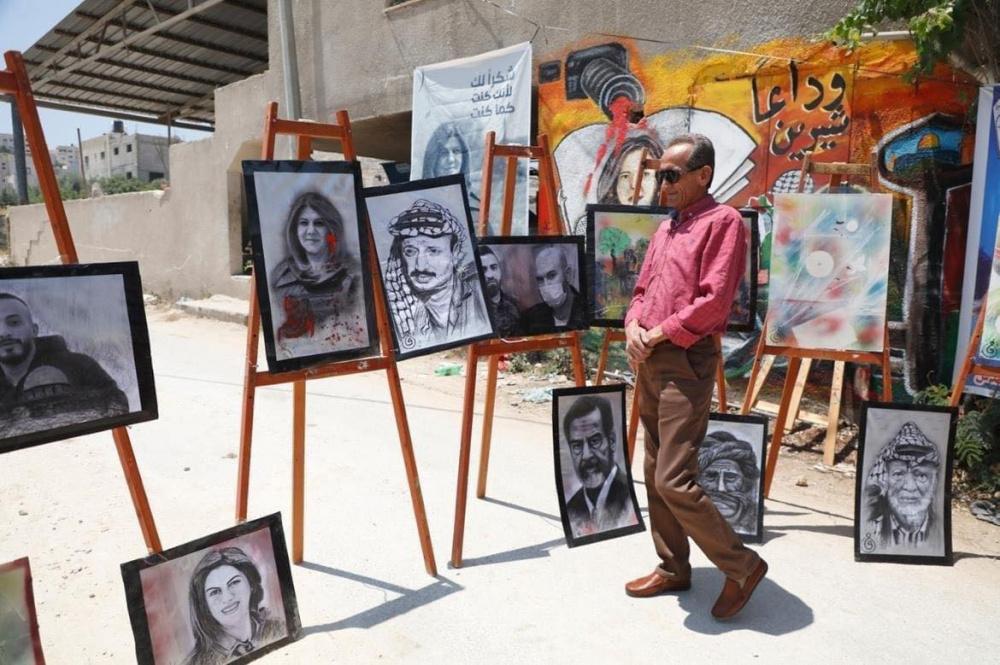 افتتح محافظ جنين أكرم الرجوب، اليوم الخميس، المعرض التشكيلي "أيقونة الصحافة"، للفنانة فداء سمار في موقع استشهاد الزميلة الصحفية شيرين أبو عاقلة في مخيم جنين برعاية الرئيس محمود عباس.