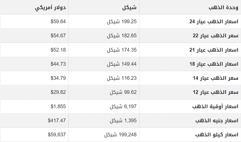 وجاءت أسعار الذهب في فلسطين اليوم كما يلي: