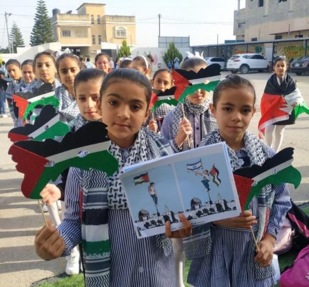 وأكدت الوزارة أنها حريصة على غرس قيم الانتماء الوطني لدى الطلبة، وتعزيز حضور العلم الفلسطيني في مختلف النشاطات؛ باعتباره رمزاً للسيادة والاستقلال والتحرر.