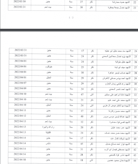 قائمة أسماء الشهداء خلال 2022: