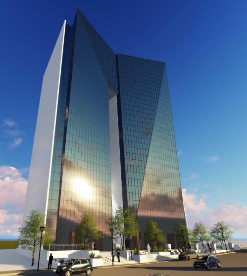 وسيكون البرج التجاري بواجهة زجاجية بانورامية كاملة وبارتفاع 67 متر في البيرة- الإرسال سنتر.