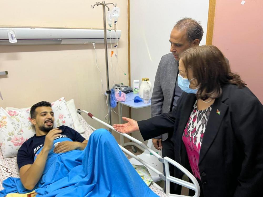 وعادت وزيرة الصحة عددا من الجرحى بفعل اعتداءات الاحتلال على المواطنين في الخليل، وأكدت أن كافة مراكز العلاج الفلسطينية تعمل بروح واحدة لخدمة أبناء شعبنا وتقديم الواجب الإنساني لهم.